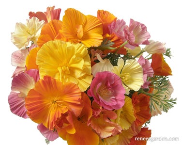 Enchanting Dancing Ballerina is a graceful mix of special California poppies that have unusual fully double and semidouble blossoms with delicate fluted petals. These paper-thin, glowing flowers bloom in a shimmering range of rich sherbet colors including deep rose, lilac, scarlet, orange, yellow and white. Like all California poppies, you’ll find carefree Dancing Ballerina is easy to grow and forgiving of poor soil. The abundant flowers shine on slender stems above feathery, gray-green foliage.
